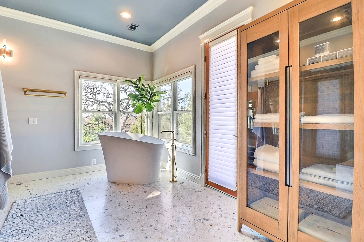 This Danville home addition expanded the residence with a sophisticated bedroom suite featuring a luxurious full bathroom, tailored closet storage, and a seamlessly incorporated laundry room.